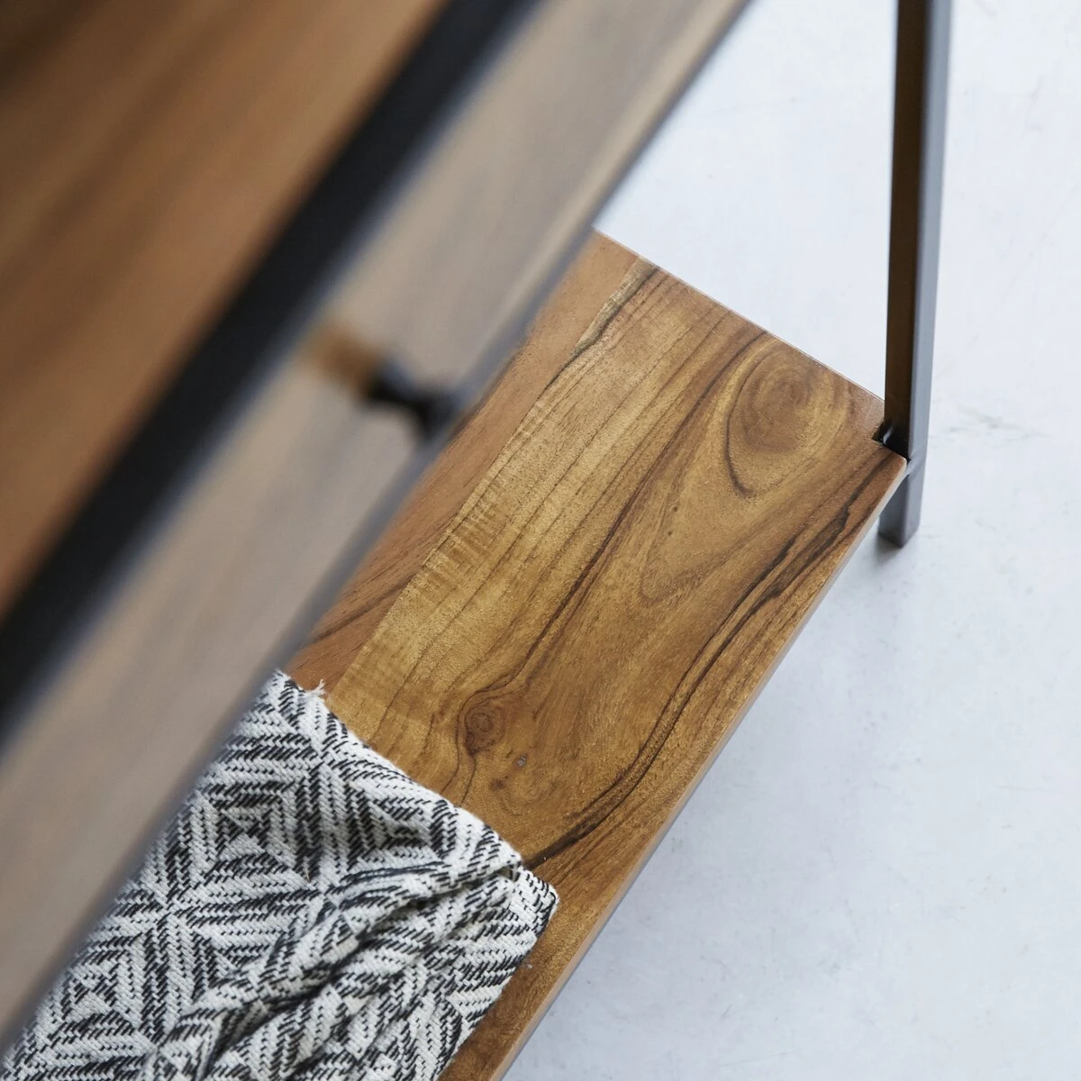 La console en mĂ©tal et bois d’acacia massif certifiĂ© FSC® 100 Agra interprète avec beaucoup de rĂ©ussite le style industriel.