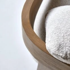 Le fauteuil Boti en Mindi massif et tissu bouclé est décliné dans une version chaise Boti.