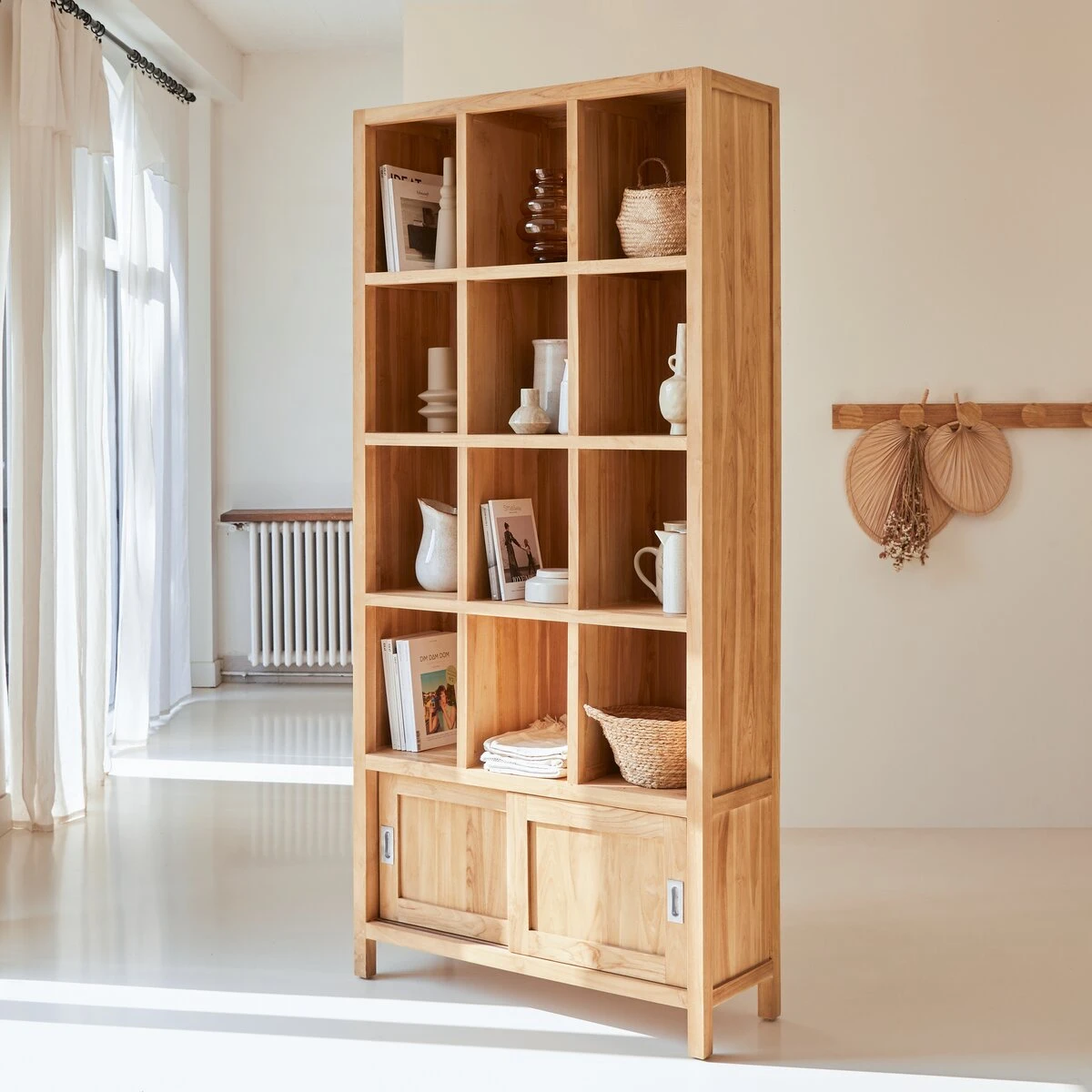 Idéale au séjour comme dans la cuisine ou une entrée spacieuse, la bibliothèque en teck massif Coffee Tek trouve aussi sa place dans une chambre ou le bureau.