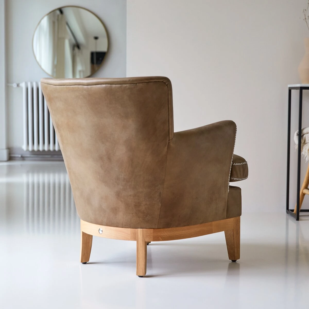 Le fauteuil Comoc Bleu Nature combine un petit air vintage tout Ă fait dans lâair du temps, des lignes accueillantes et confortables et de belles matiĂšres : le cuir finition cheyenne et le chĂȘne massif brut.