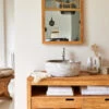 Faites entrer de la fantaisie dans votre salle de bain : élégante et très visuelle, la vasque ronde Gina en terrazzo confetti conjugue les qualités d’un équipement résistant sur le long terme et l’originalité d’un matériau composé d’un alliage de pierres naturelles recyclées. Pièce centrale de l’aménagement de votre salle de bain, elle sera parfaite sur un meuble en bois clair ou foncé. Vernie pour être facile à vivre au quotidien, c’est la touche finale qui déterminera l’atmosphère de votre pièce d’eau.