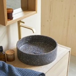 La vasque ronde Gina existe aussi en version bĂ©ton grey, terrazzo cream et terrazzo black.Â