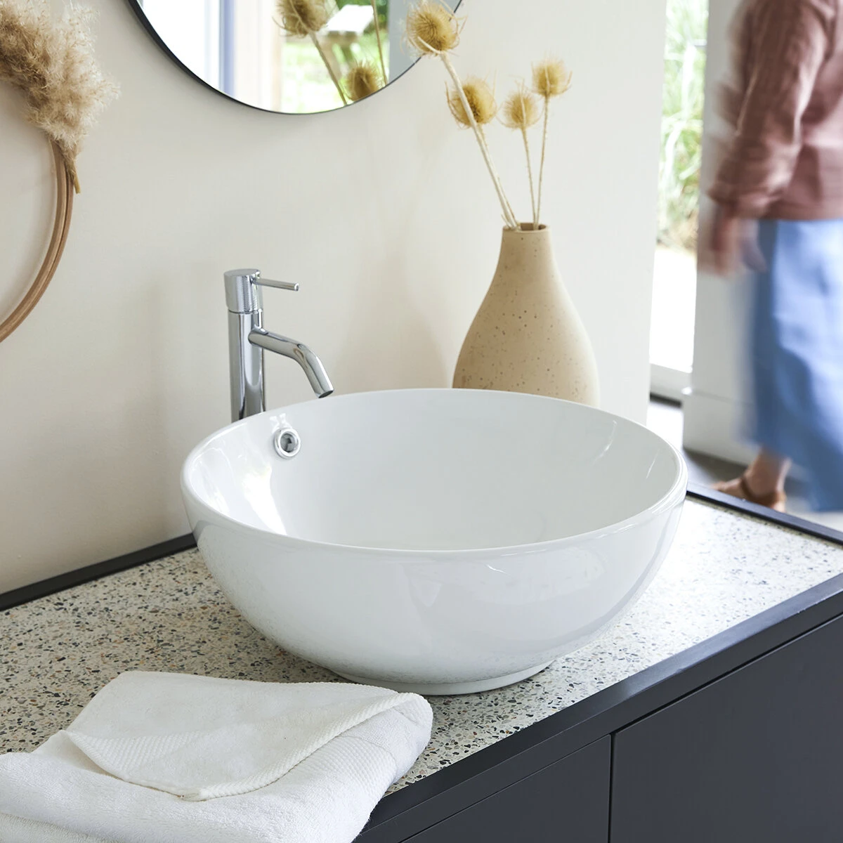 Notre vasque Hilde se mariera facilement avec tous nos meubles de bain, vous pouvez aussi la retrouver déjà intégrée avec notre meuble sous vasque Alexi. Séduits par notre vasque Hilde ? Vous tomberez surement sous le charme  de notre vasque Alexi également en céramique, découvrez aussi toutes nos vasques design en terrazzo, marbre, pierre de rivière …