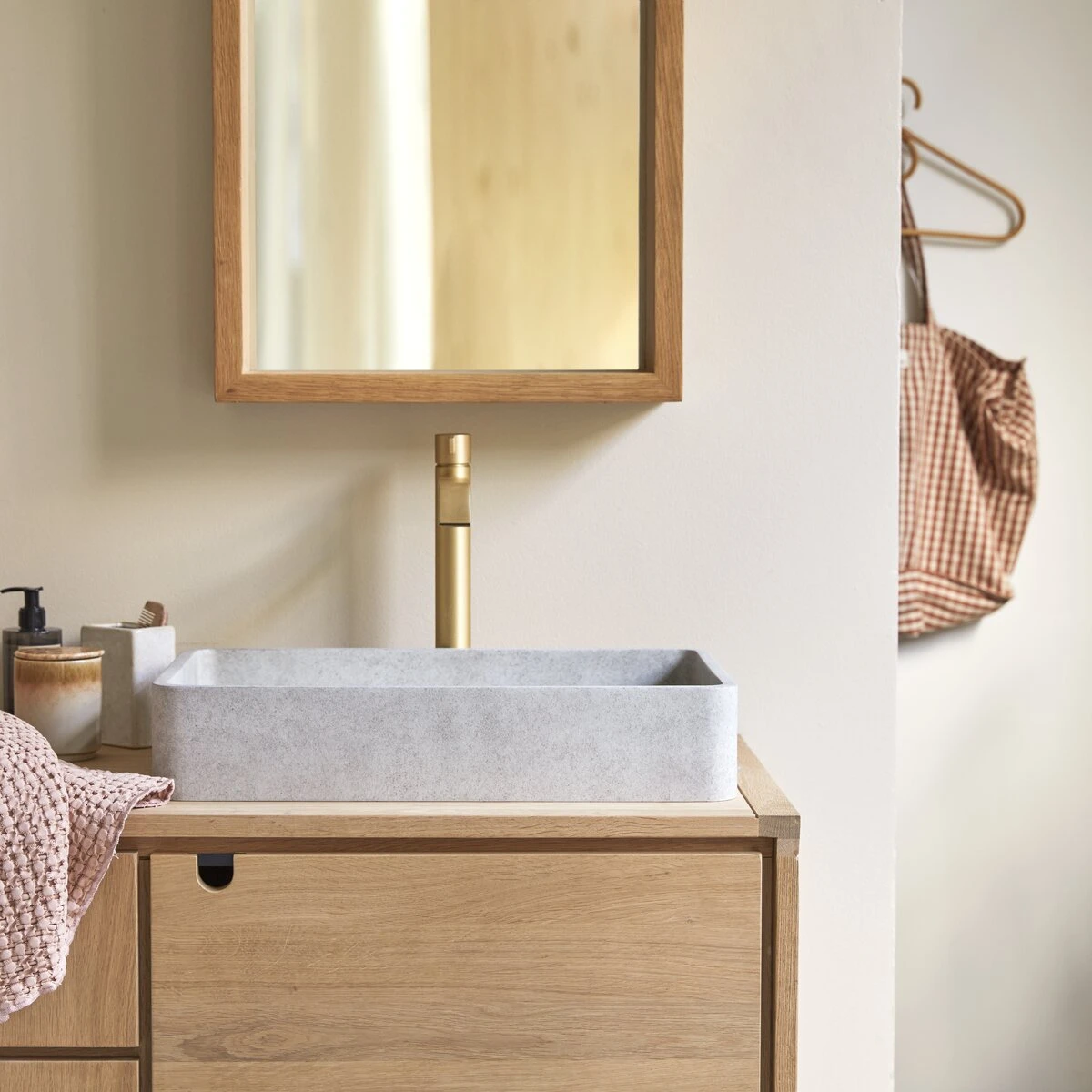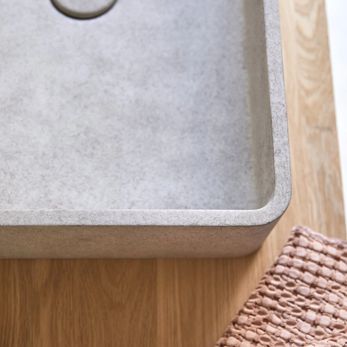 ÉlĂ©gante, la vasque Iris en bĂ©ton existe aussi en terrazzo cream et en terrazzo black. Elle vous est Ă©galement proposĂ©e en terrazzo confetti.Â