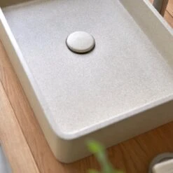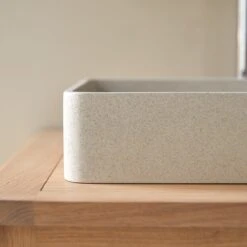 N’hĂ©sitez pas Ă dĂ©couvrir aussi nos autres vasques Ă poser en terrazzo: version carrĂ©e ThaĂŻs – version ronde Gina et Micha.