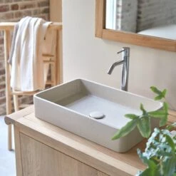 N’hĂ©sitez pas Ă dĂ©couvrir aussi nos autres vasques Ă poser en terrazzo: version carrĂ©e ThaĂŻs – version ronde Gina et Micha.