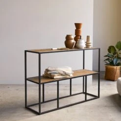 La console en métal et orme Isak interprète avec beaucoup de talent le style industriel. On aime la blondeur de son orme qui offre une finition antique et le contraste des matières : mariage réussi du bois massif et du métal noir. On aime aussi sa conception qui offre de multiples espaces de rangement.