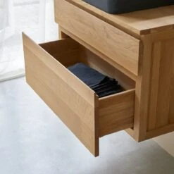 Le meuble de salle de bain en chĂȘne Jacob existe aussi en plus grande dimension : 120 cm. Il vous est Ă©galement proposĂ© en version teck.