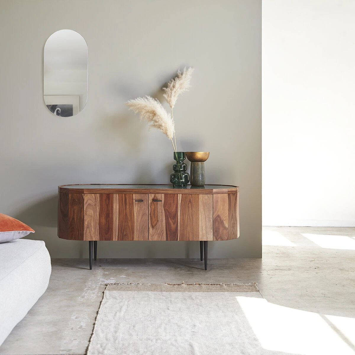 Le meuble TV en palissandre massif et marbre Jade a de tels atouts qu’on serait tentĂ© de le laisser seul dans la pièce pour que chacun puisse l’admirer Ă sa guise : superbe alliage de deux matĂ©riaux nobles – le marbre qui fait son grand retour et le palissandre tellement visuel -, architecture jonglant entre ligne et courbe, large capacitĂ© de rangement… Au grĂ© de votre envie ou de vos besoins, vous l’utiliserez pour accueillir la tĂ©lĂ© et autres appareils multi-mĂ©dia ou en ferez un buffet aux courbes Ă©tonnantes. Au salon, au sĂ©jour, dans la chambre ou une entrĂ©e spacieuse… il trouve sa place partout dans la maison !