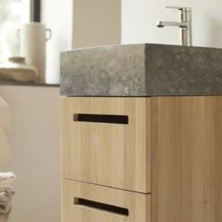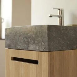 Le meuble de salle de bain suspendu Line, en chĂȘne et marbre, existe aussi en 85 cm. NâhĂ©sitez pas Ă lui associer la colonne Line en chĂȘne massif. Il vous est Ă©galement proposĂ© en noyer et en teck.Â