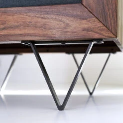 Le fauteuil Metric affiche la beautĂ© d’un palissandre massif veinĂ© aux qualitĂ©s de durabilitĂ© remarquable, un design contemporain appuyĂ© par d’esthĂ©tiques pieds en « épingle » et de bonnes proportions pour le rendre très confortable.