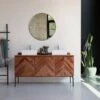 Le meuble de salle de bain Nova en chĂȘne massif et terrazzo premium pink a tous les bons atouts pour vous sĂ©duire et donner un nouvel Ă©clat Ă votre piĂšce dâeau ! Son Ă©lĂ©gance contemporaine est rehaussĂ©e par lâesthĂ©tique pleine de caractĂšre de son plan double vasque travaillĂ© dans un matĂ©riau innovant et facile Ă vivre : le terrazzo premium, aussi beau que le marbre et qui se nettoie dâun coup dâĂ©ponge humide !