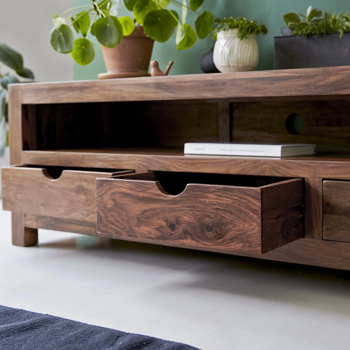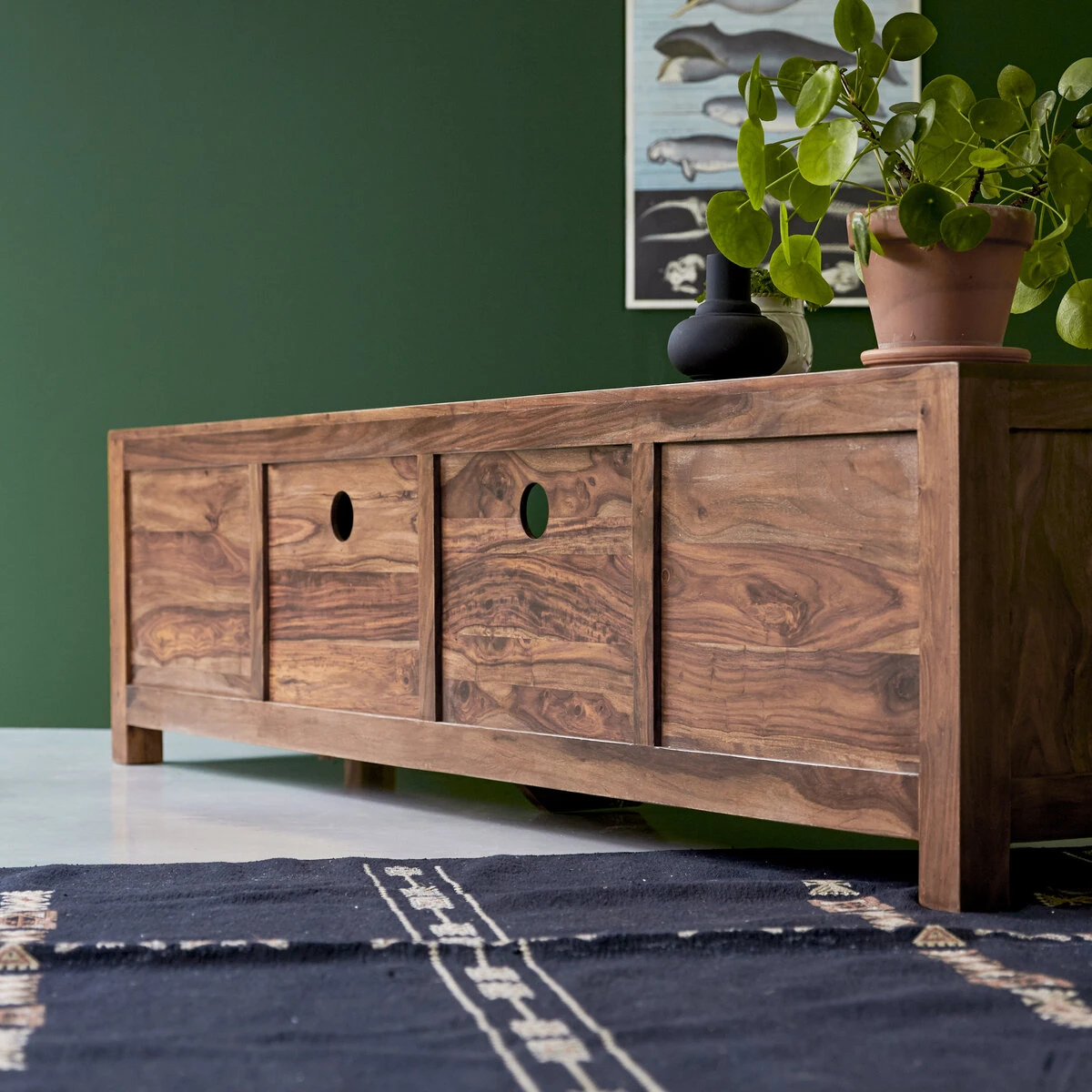 FabriquĂ© en bois de palissandre massif, ce meuble de tĂ©lĂ©vision apportera une note chic et chaleureuse au salon …