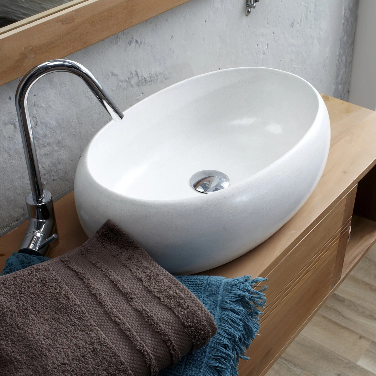 Cette petite vasque ovale sera idĂ©ale dans tout type de salle de bain. AccompagnĂ©e d’un de nos meuble de salle de bain, elle fera de votre espace bain, un univers d’exception et de bien-ĂŞtre !