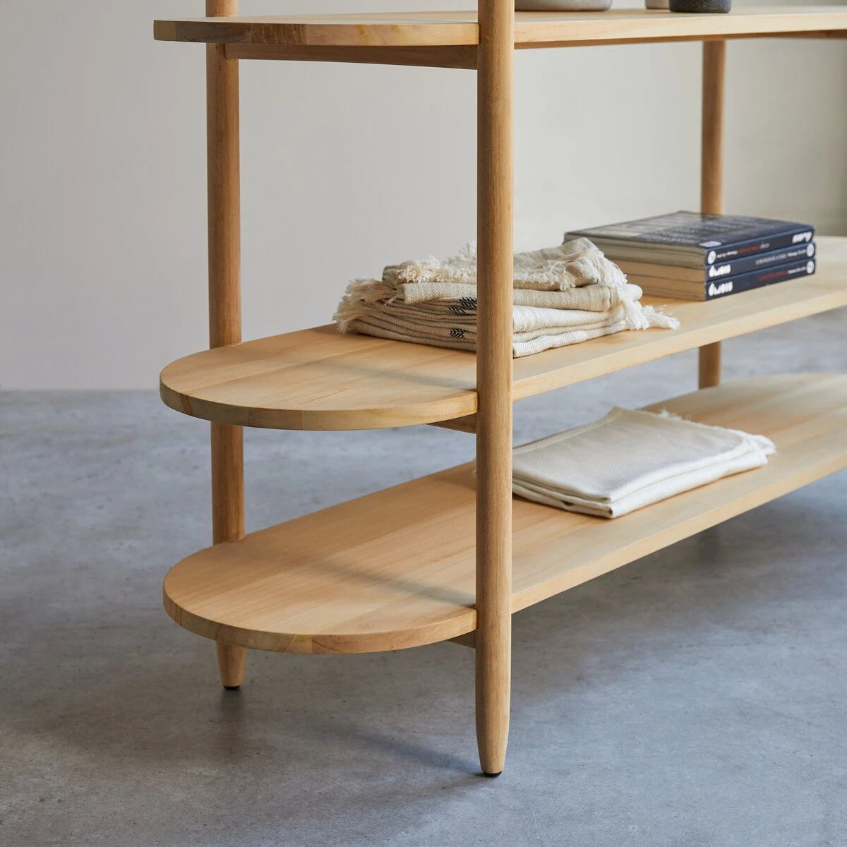 La console en teck massif Poline est également déclinée en colonne de salle de bain et en étagère de salon. Elle se marie à la perfection aux meubles de notre gamme esprit Naturel.