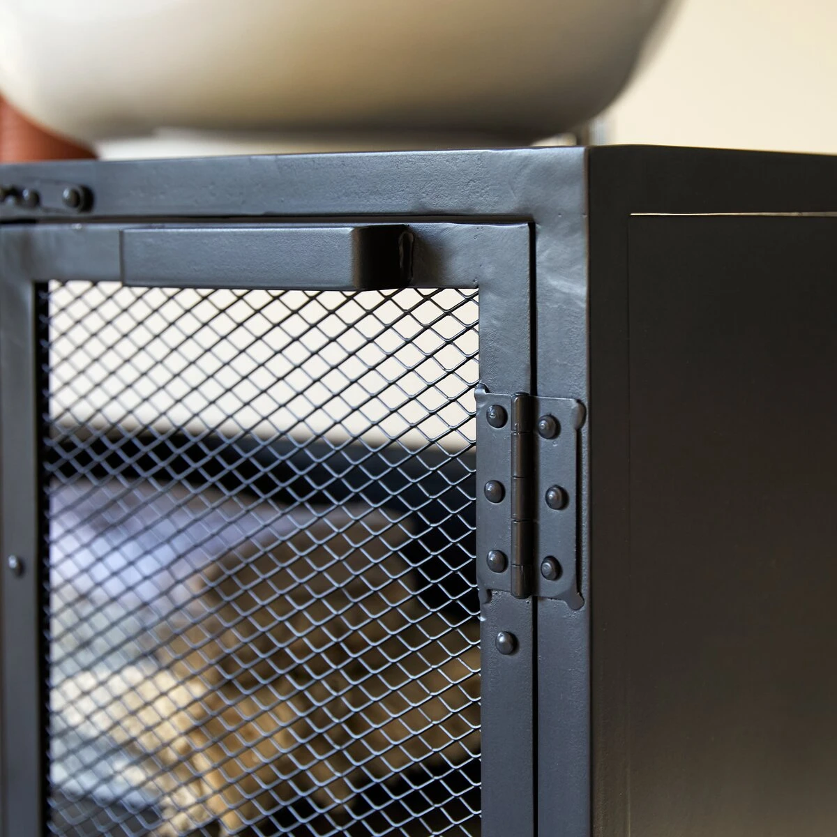 Le meuble de salle de bain en métal et manguier massif Romy offre tous les atouts d’un meuble inspiré des ateliers New Yorkais du début du siècle dernier : on aime l’alliance des matières, les portes grillagées comme l’étaient les garde-manger d’époque et la ligne très industrielle.