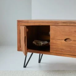Le long meuble TV en noyer massif Senson peut également être détourné en buffet bas dans une version très contemporaine. On y range alors la vaisselle et le linge de table. Il existe en version 120 cm et appartient à notre gamme Senson dans laquelle vous retrouverez bahut, buffet, commode en noyer massif, teck massif ou chêne massif.