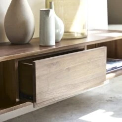 Envie d’un peu de diversité ? N’hésitez pas à combiner notre meuble TV en noyer massif Senson à vos meubles existants ou aux éléments de notre gamme esprit Naturel. La sobriété de ses lignes autorise de nombreuses associations.