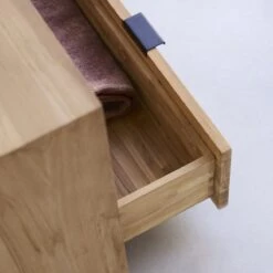 On aime sa forme “bloc” adoucie par un cadre tout en légèreté, la blondeur de son bois certifié FSC® et sa belle capacité de rangement. Bien pratique, il reçoit appareils et accessoires dans ses 2 niches et un large tiroir, idéal pour visualiser d’un seul regard tout ce qu’il contient.
