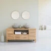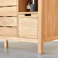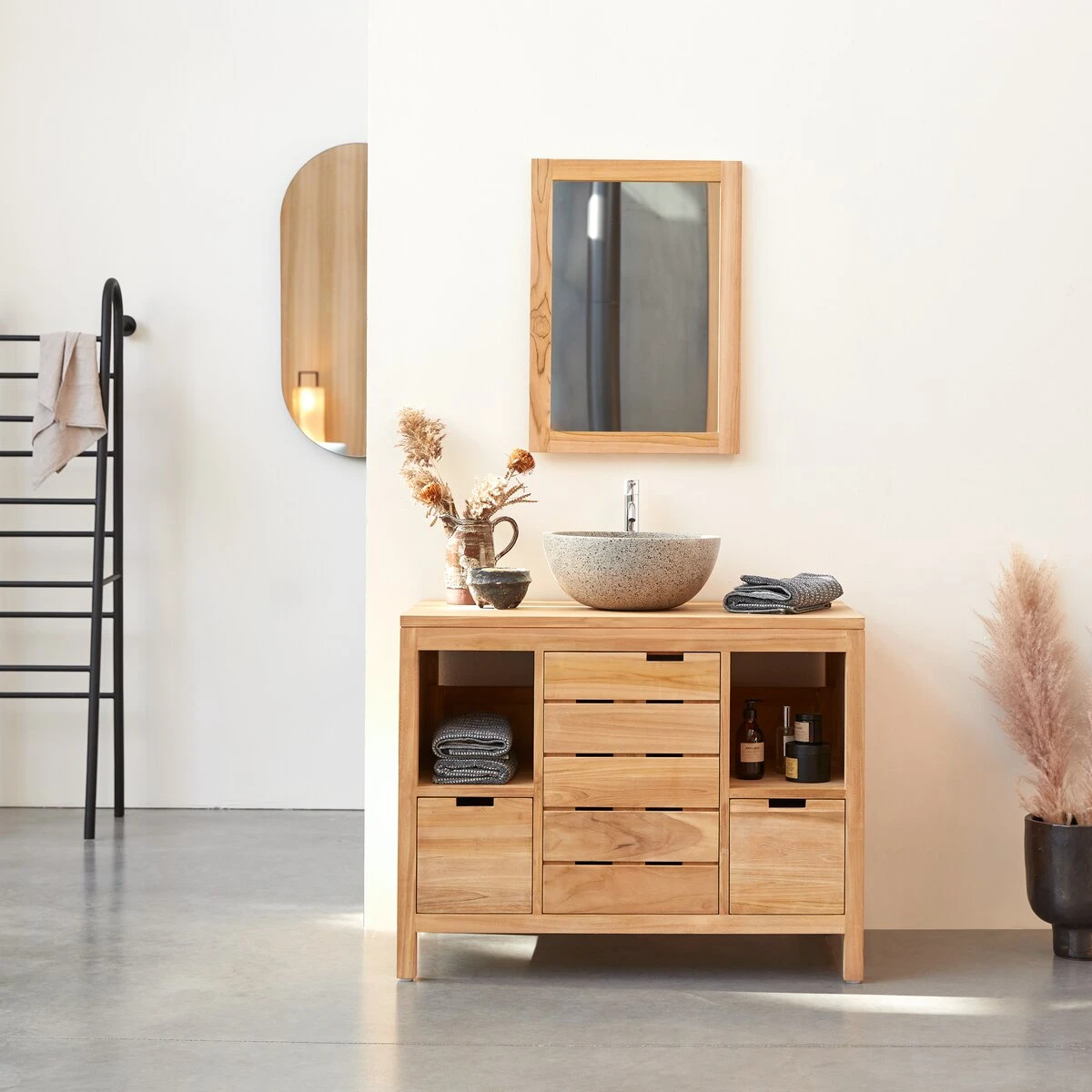 Magnifique meuble de salle de bain en Teck massif brut. Les finitions haut de gamme de ce meuble sous vasque en teck seront du plus bel effet dans votre salle de bain.