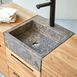 Un design très tendance, l’élégance naturelle du teck massif imperméable toujours d’actualité et le raffinement du marbre : le meuble en teck et vasque en marbre Slats 122 a vraiment tout les atouts d’un meuble dédié à un espace de détente !