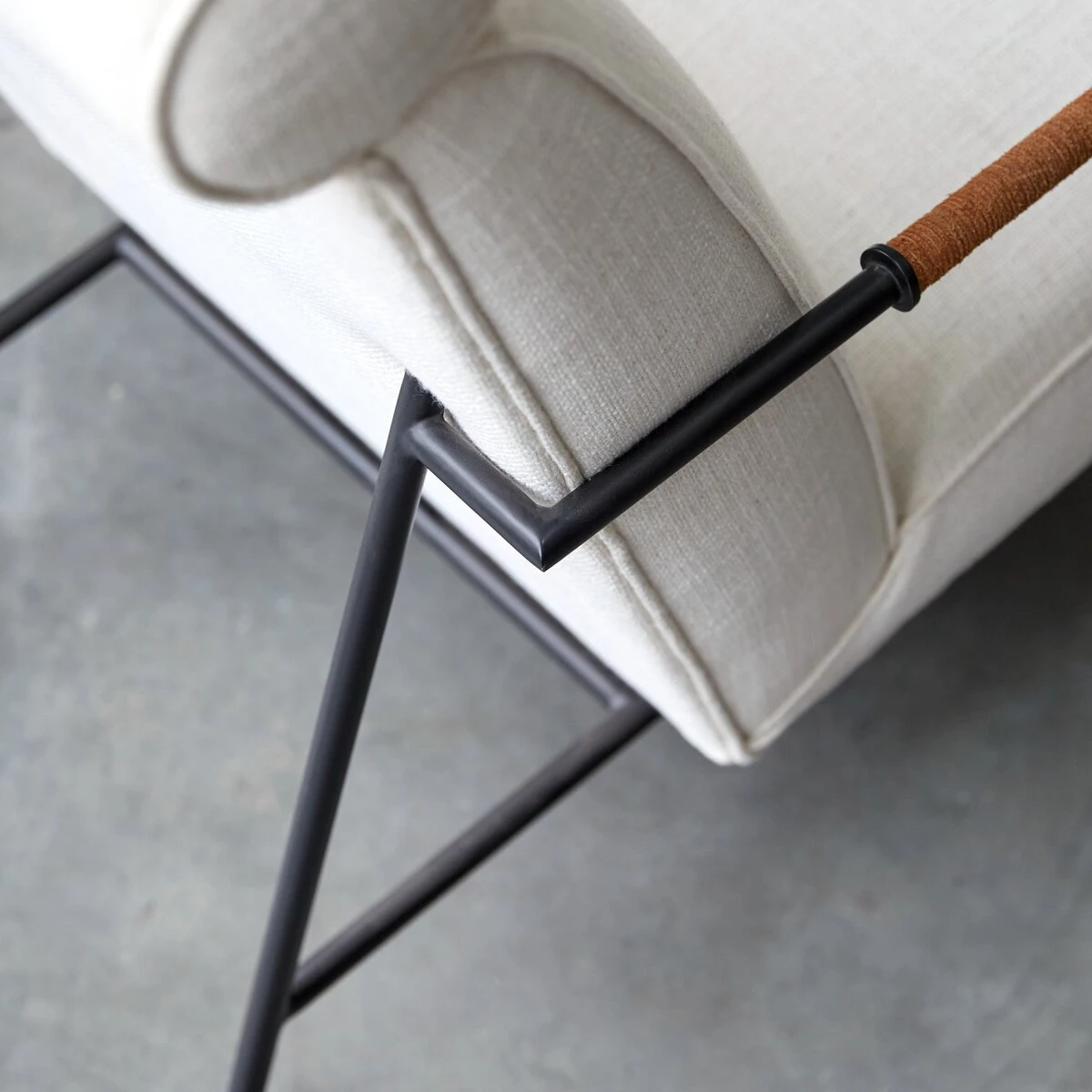 D’inspiration africaine, le fauteuil en métal Taha invite au voyage… On aime l’association des matériaux et le design empreint d’originalité : le piétement est en métal rehaussé de cuir au niveau des accoudoirs, l’assise et le dossier sont en toile aspect lin.