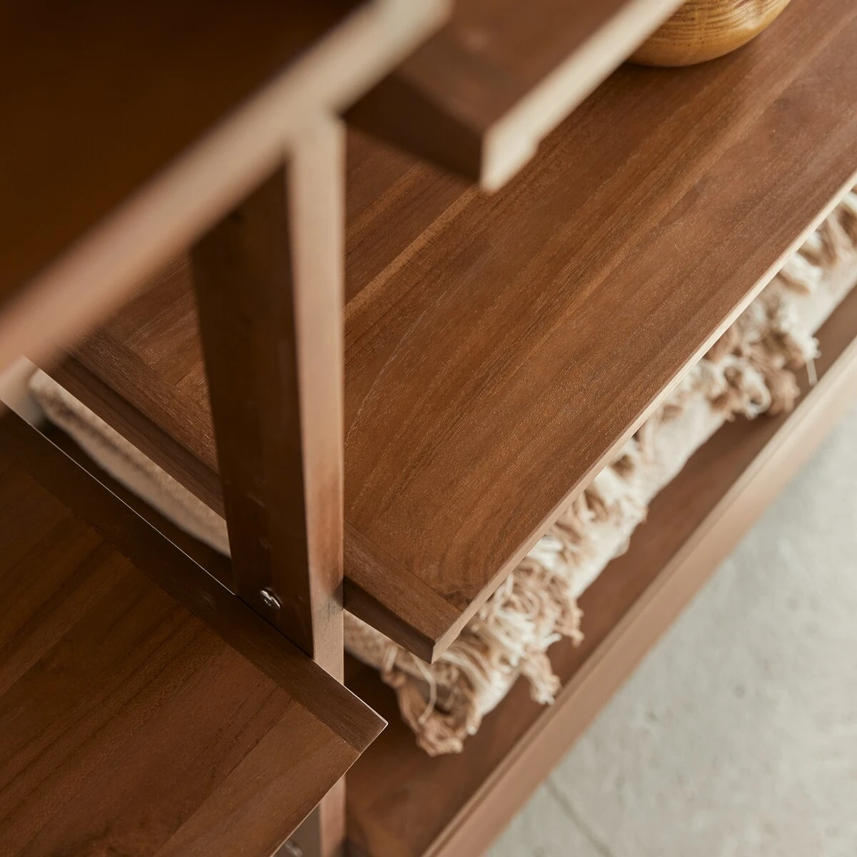 La généreuse bibliothèque double en teck Wall by Karpenter est réalisée en teck recyclé, un bois plein de charme dont les petites imperfections sont un gage d’authenticité. Opter pour cette séparation de pièce (ou bibliothèque plus sage contre une cloison classique), c’est opter pour une déco aux accents d’ailleurs… De généreuses proportions pour un large rangement : livres, petits ou grands bibelots… trouveront naturellement leur place sur 7 étagères et 3 niches dont 2 fermées par porte à rabat.